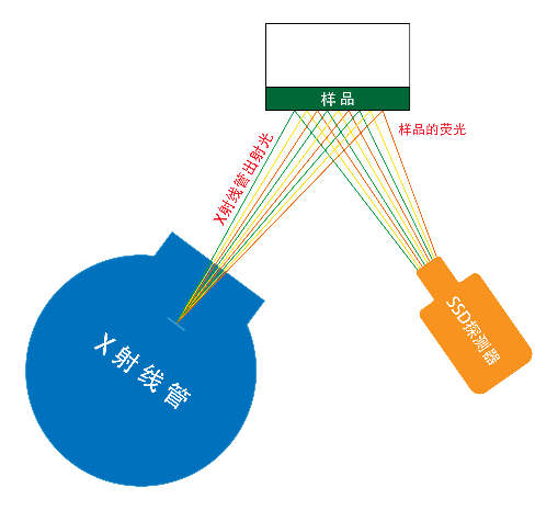 激發X射線直接照射到樣品上,樣品激發出的特征X射線熒光直接進入探測器,并依據其能量對其進行分析。 |