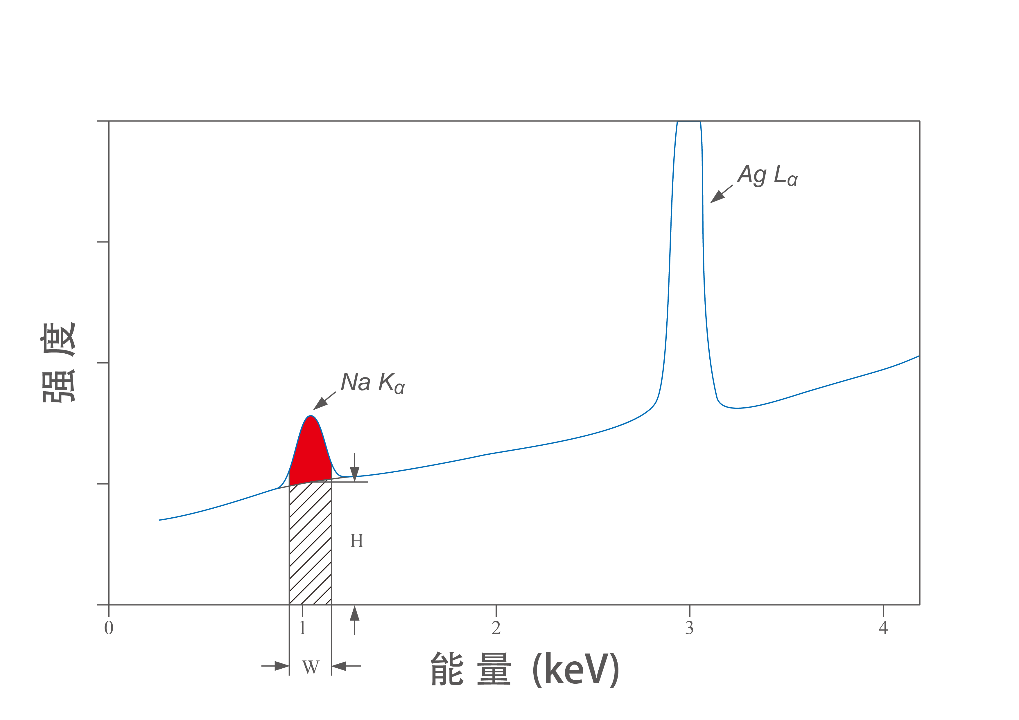 圖2、4中的H就是(1)和(2)式中的H,是全能峰Na峰的背景或曰本底的高度。由于這二種光譜儀的激發光源X射線管發出的X射線是直接照射到樣品上,所以這個高度是一樣的。